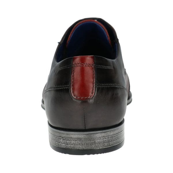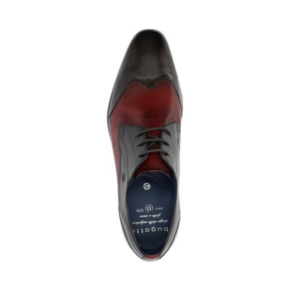 Stylish two tone leather shoe in plain Dark Grey & structured Burgundy insert, with batwing style top.