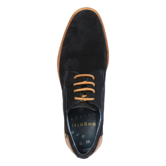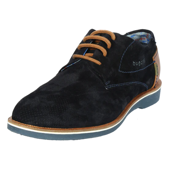 Relaxed through the day with the low shoe from the Melchiore group in dark blue suede. The lace allows the foot to relax thanks to the fit and provides a fashionable touch thanks to the tan accents and the used look of the leather.