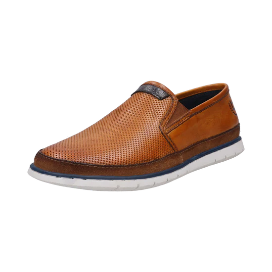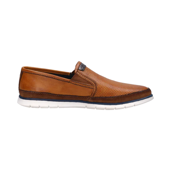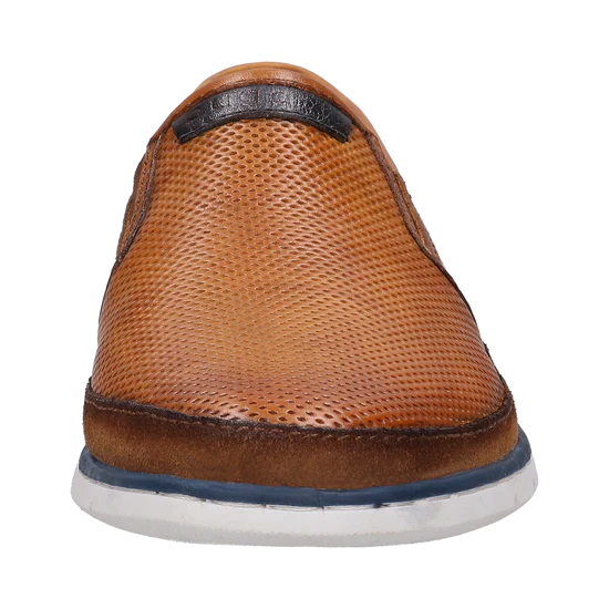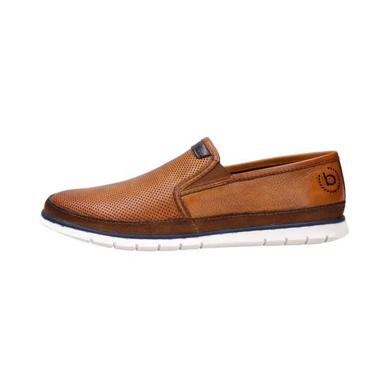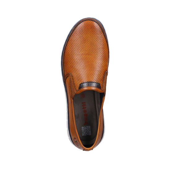 The perforations of this bugatti nappa leather slip-on shoe in cognac brown provide a ventilated feeling of the whole foot. Easy to put on due to its lateral elasticity, the foot rests on thin bugatti Soft-Flex soles, the shoe is pleasantly wearable. The embossed logo completes the elegant look as a discreet detail.