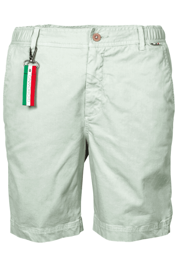 Mint Green twill cotton stretch bermuda shorts. Side pockets, button and zip closure and back pocket. Stretch comfort waistband with belt loops.