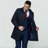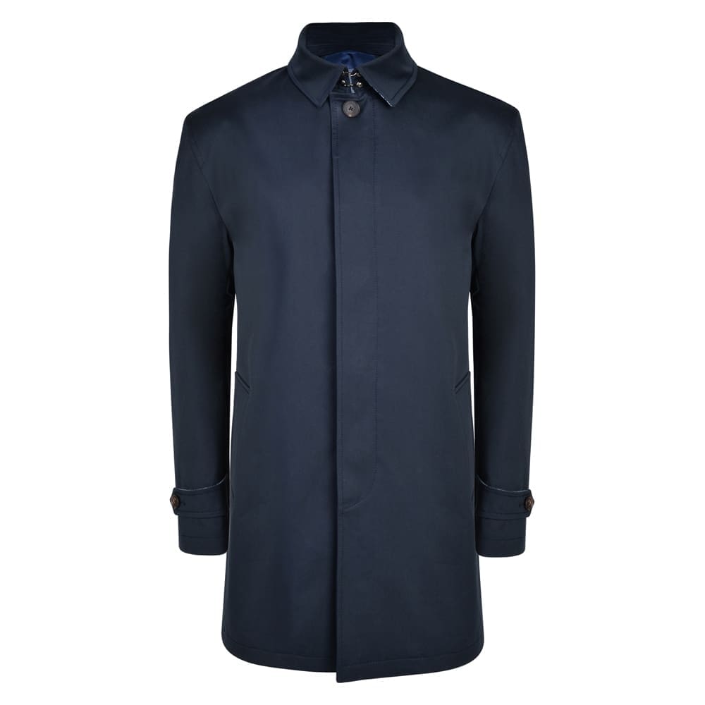 A contemporary and timeless navy Muckross raincoat featuring a Donegal Tweed trim, concealed zip fastening and curved welt pockets. The perfect water resistant coat to be worn over jackets and suits.