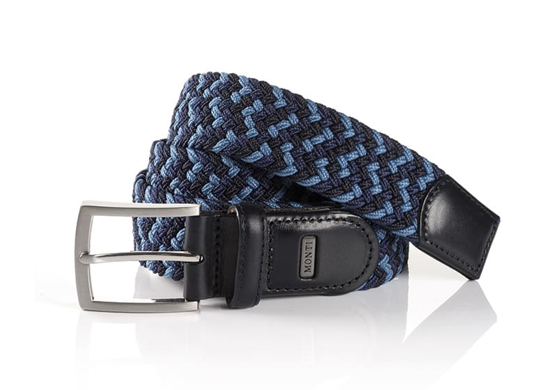 Blue & Navy braided FLEX belt with nickel buckle.