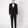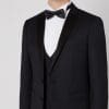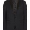 Black dress tuxedo jacket, slim fit wool-blend mix and match suit jacket with peak satin lapels. Single breasted, button two, side vents and straight flap side pockets.