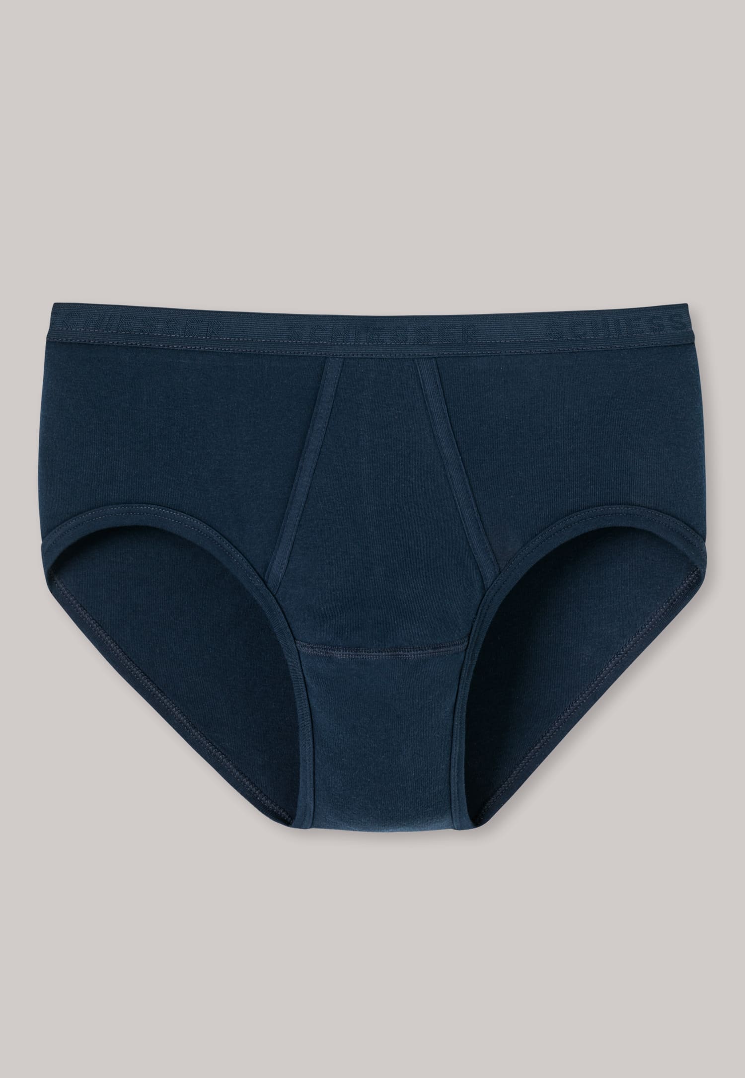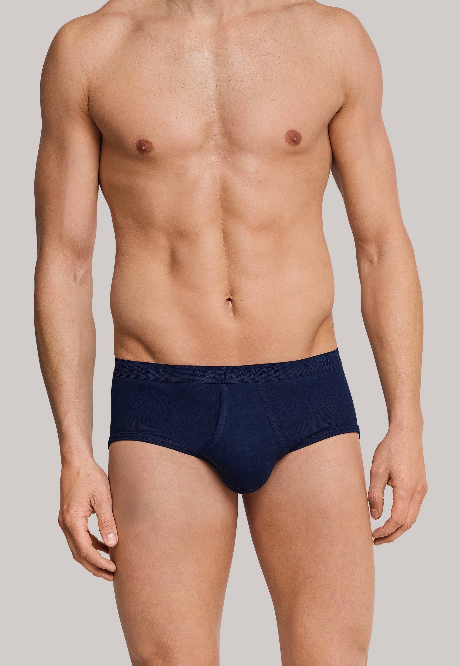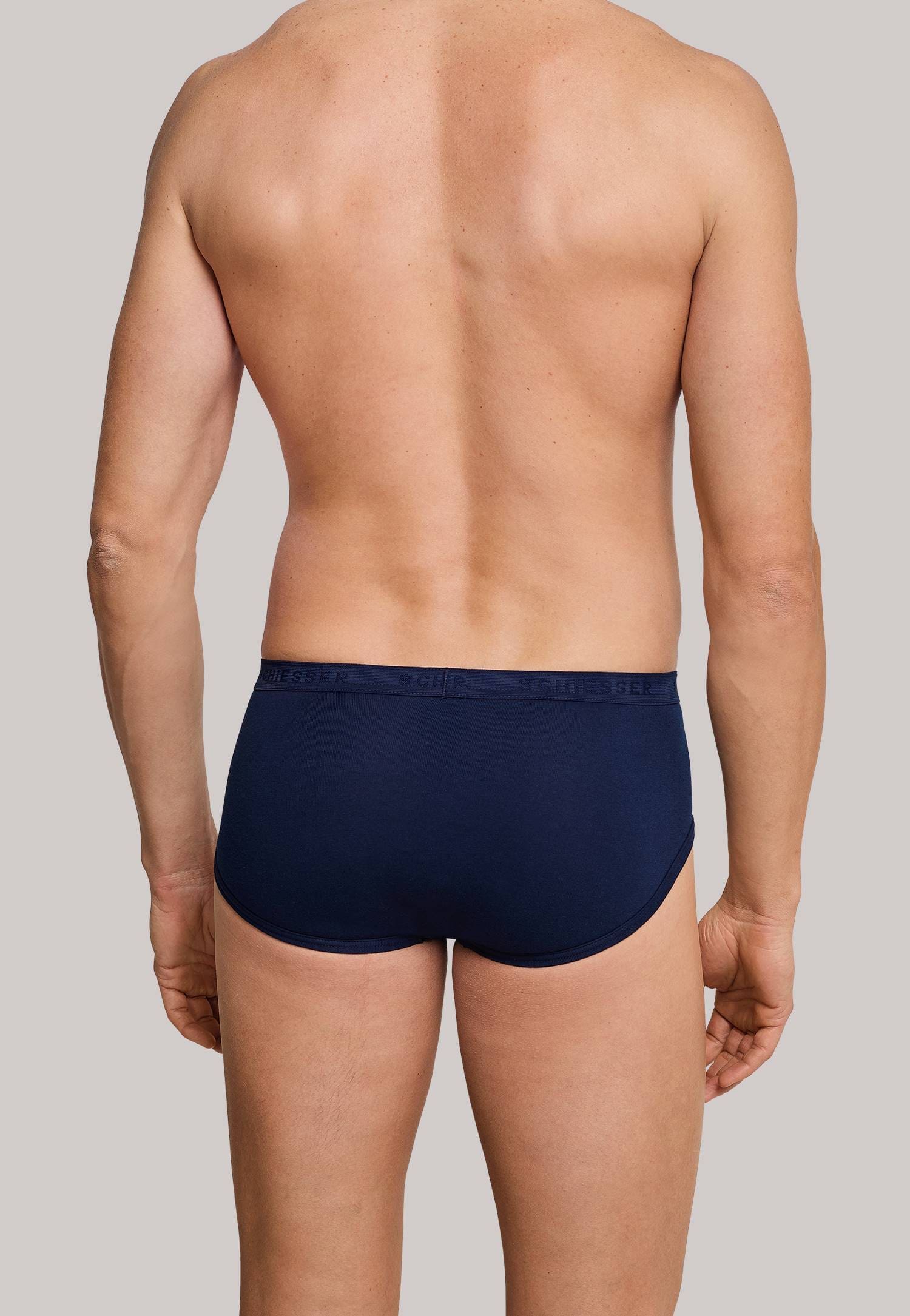 Underwear classics with a fly: these navy sports briefs from the “Original Classics” SCHIESSER series are perfect for discriminating men thanks to their top quality material and optimal comfort. 100% super combed cotton feels beautifully soft on the skin, and provides a perfect fit even after many 95 degree washes thanks to the SCHIESSER elastic band. An inherently stable, comfortable pair of men’s briefs without any annoying side seams, in the best SCHIESSER quality!