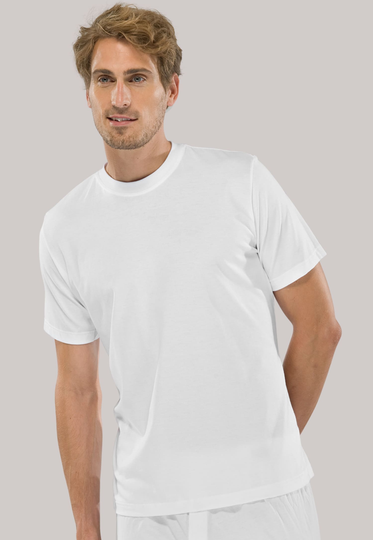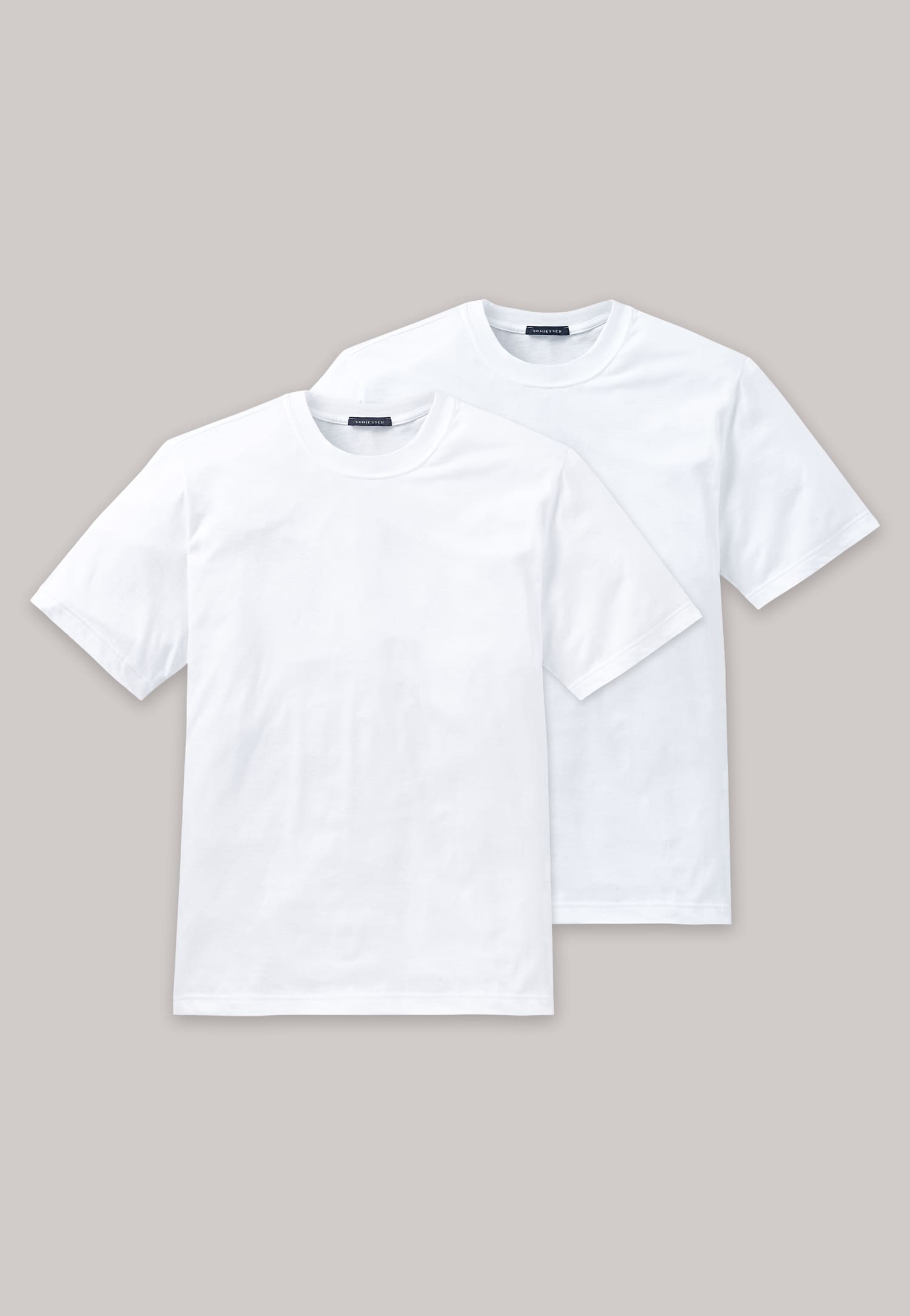 Basics in a strong double: These two white T-shirts from the SCHIESSER series “Essentials” convince sophisticated men with a pleasantly soft material at an attractive price. Fine single jersey material from 100% cotton ensures high wearing comfort and convinces with form stability after many wash and dryer tumbles. The ideal round neck shirts for men that prefer to feel the best SCHIESSER quality on their skin daily.