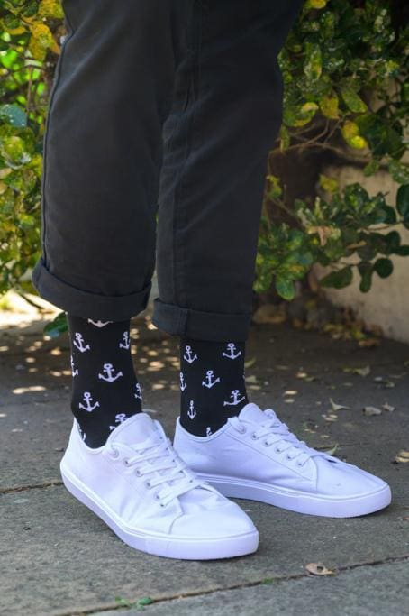 You’ll be sailing through the day with these Black Anchor Bamboo Socks added to your look. A black canvas paired with eye-catching pops of white will set you apart from the crowd. Perfect for any occasion, Black Anchor Socks can be dressed up or down.
